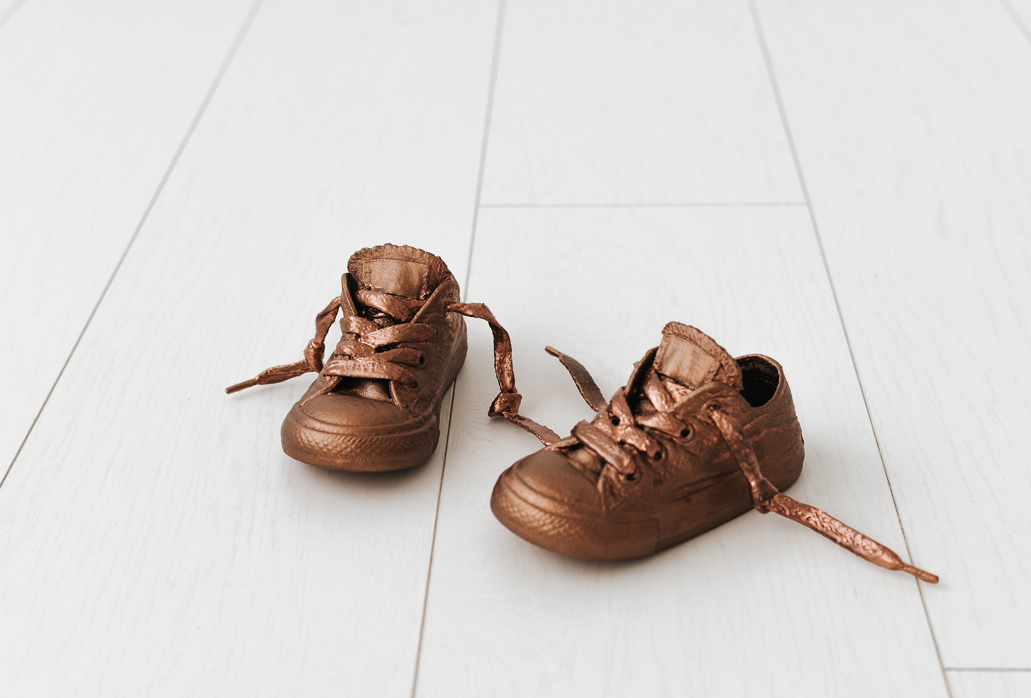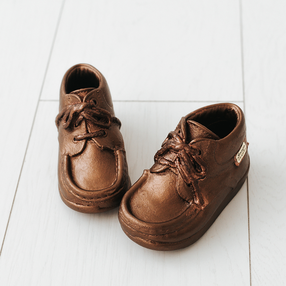 Čeveljčki, ki jih pošljete ali prinesete, imajo lahko tudi vidne znake uporabe. Nanje nanesemo neoporečen bakren premaz, ki čeveljčkom podari čudovit bronast videz in trajnost.