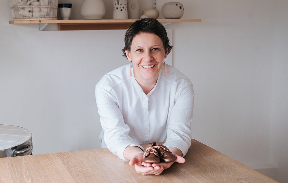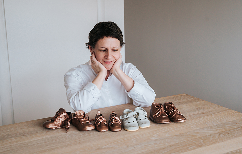 Zato sem toliko bolj skrbno shranila čeveljčke, v katerih so shodili moji otroci, saj sem vedela, da želim enako storiti za svoje otroke. Ker na našem trgu nisem našla ponudnika, sem sama poiskala način, kako njihove čeveljčke obdelati, da bodo videti kot moji. Ponovno sem odkrila posebno tehnologijo, s katero sem čeveljčke lahko pripravila tako, da ohranim vse njihove podrobnosti za vedno. Verjamem, da nisem edina “nostalgična” mama, kot bi rekli moji otroci.”